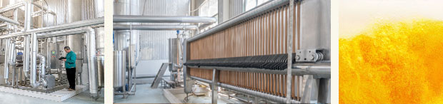 發(fā)酵成熟的啤酒原漿,通過活性分離介質(zhì),去除固體懸浮物及雜質(zhì),得到澄清透明的啤酒。